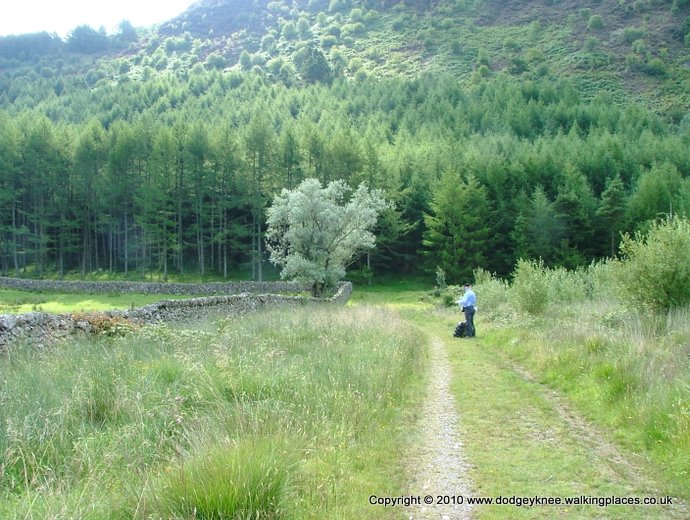 There was a little confusion at the head of the Water, partly because Machine Man Keith had disappeared with the map. It was made worse because the forestry commission had decided to build some new roads. After a wander around a wood, tripping over JCBs, we finally worked out where we were and so took a little used path to a bridge and from there, on up the valley.
