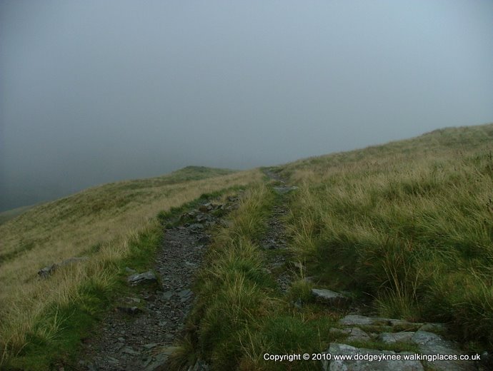 A steep trudge up St Sunday saw us enter low cloud as the heather gives way to rocks and grass. Drizzle. Mist. Low cloud. This made for a very long day. We made the top but saw no point in climbing Fairfield, as we barely saw anything of Striding Edge.
